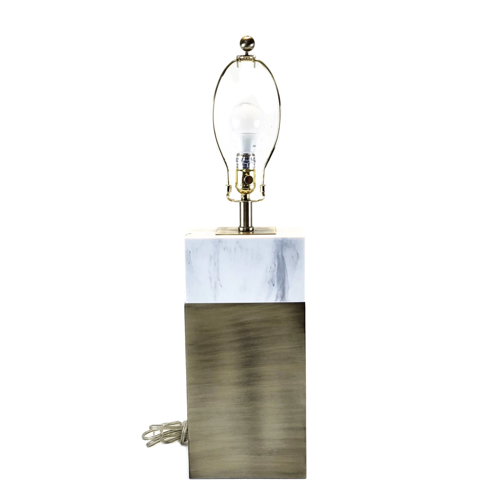 Abajur de Mesa em Resina e Mármore com Cúpula de Tecido Retangular.