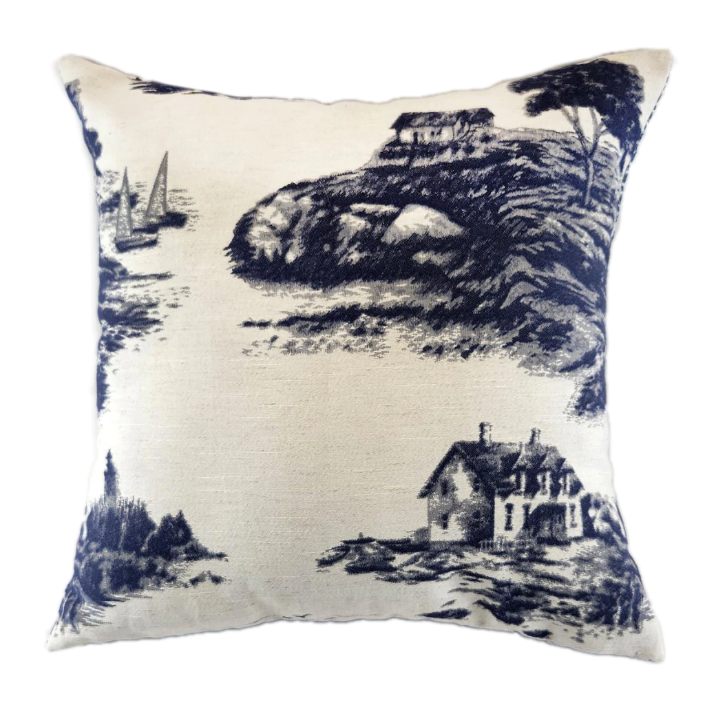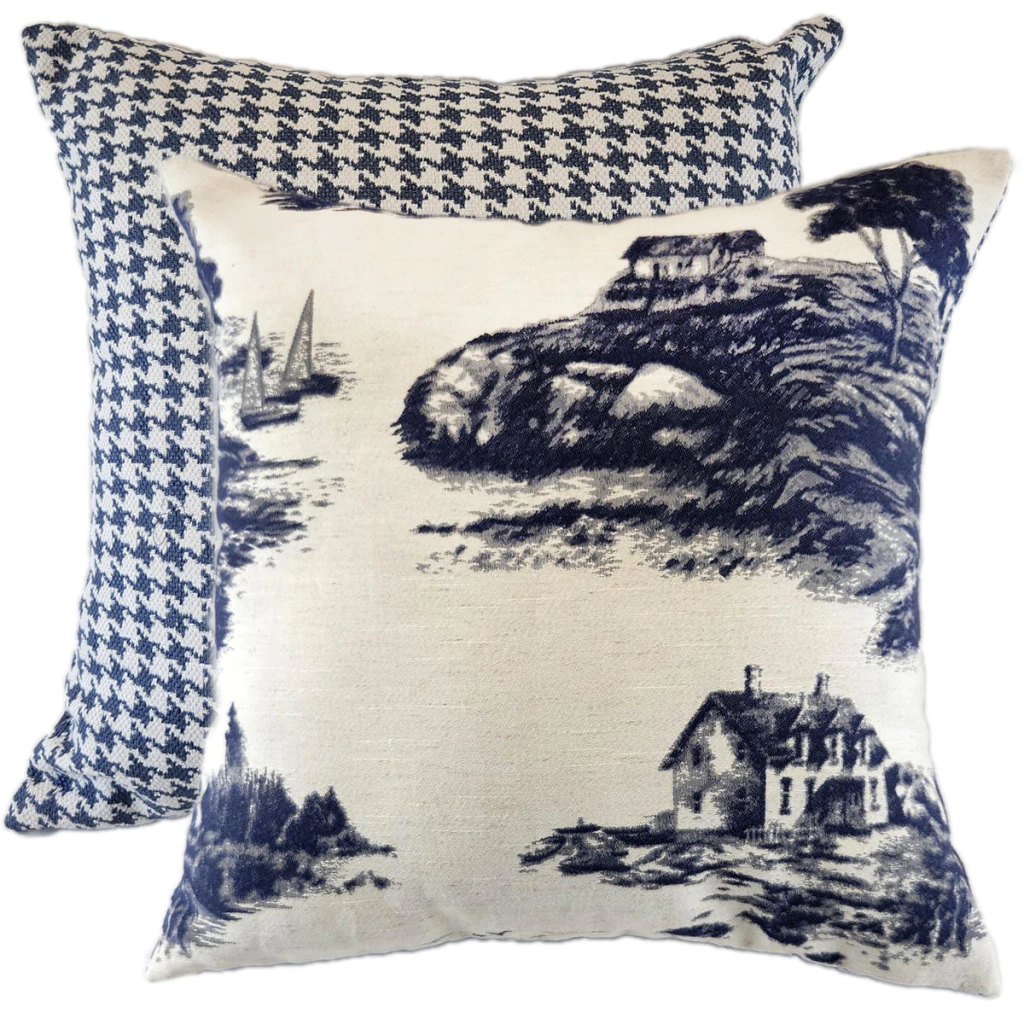 Almofada Decorativa CL Pied de Poule e Paisagem Azul - Quadrada