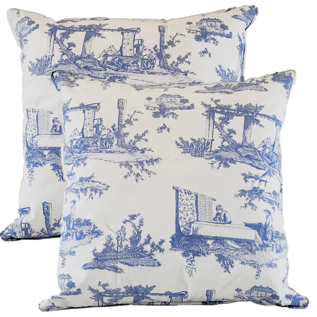 Almofada Decorativa CL Toile de Jouy Azul com Fundo Branco - Quadrado